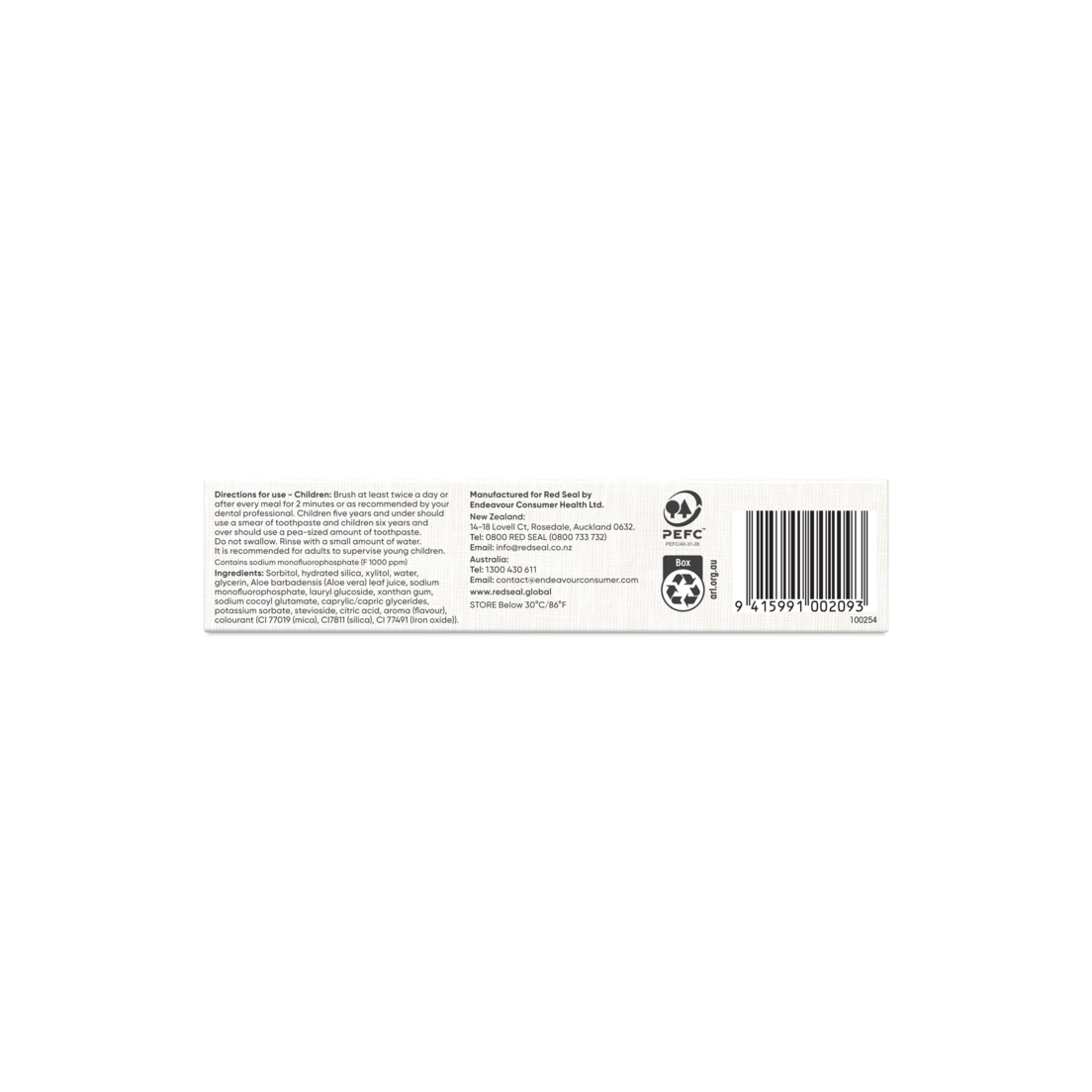Sorbitol, water, hydrated silica, xylitol, glycerin, Aloe barbadensis (Aloe vera) leaf juice, sodium monofluorophosphate, xanthan gum, lauryl glucoside, caprylic/capric glycerides, potassium sorbate, sodium cocoyl glutamate, stevioside, citric acid, aroma (flavour), colourant (mica (CI 77019), silica, CI 77491 (iron oxide red).