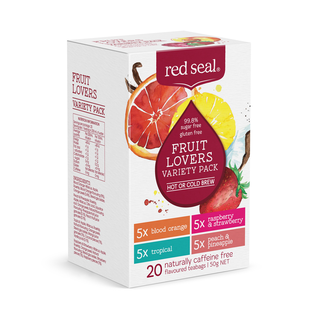 Can't decide on a favourite? Try a few, with Red Seal Fruit lovers variety pack of teas containing Blood Orange, Peach & Pineapple, Tropical and Raspberry & Strawberry. Red Seal’s unique fruit brews allow you to make a deliciously fruity drink using either hot or cold water. For a refreshing drink on a hot summer's day, simply add cold water and let brew for a few minutes.