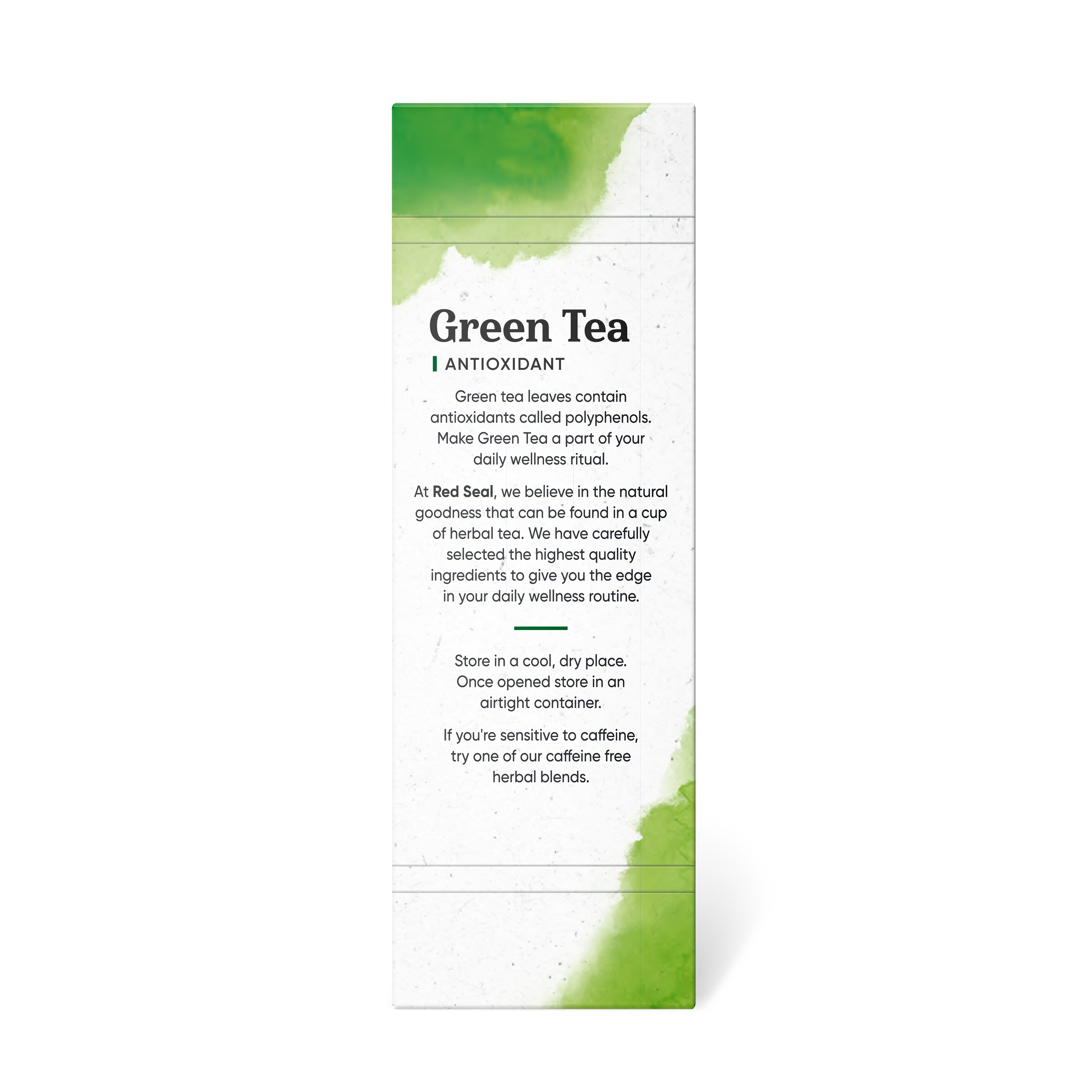 Green tea is naturally rich in antioxidants called polyphenols. Make Green Tea a part of your daily wellness ritual. At Red Seal, we believe in the natural goodness that can be found in a cup of tea. We have carefully selected the highest quality ingredients to give you the edge in your daily wellness routine.