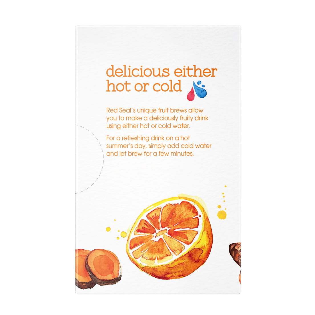 Relax and unwind with the refreshing taste of Red Seal Orange & Turmeric fruit brew. Red Seal’s unique fruit brews allow you to make a deliciously fruity drink using either hot or cold water. For a refreshing drink on a hot summer's day, simply add cold water and let brew for a few minutes.