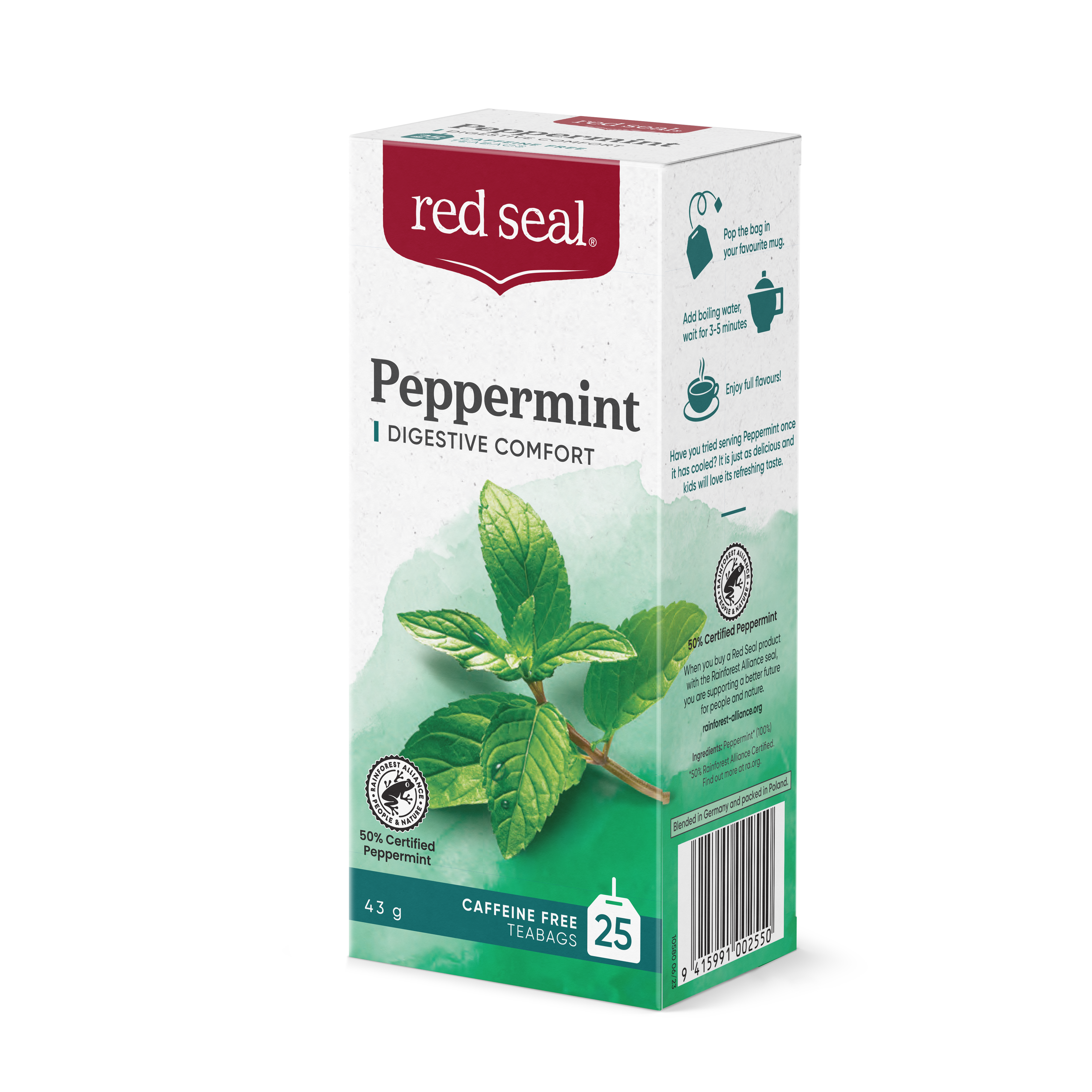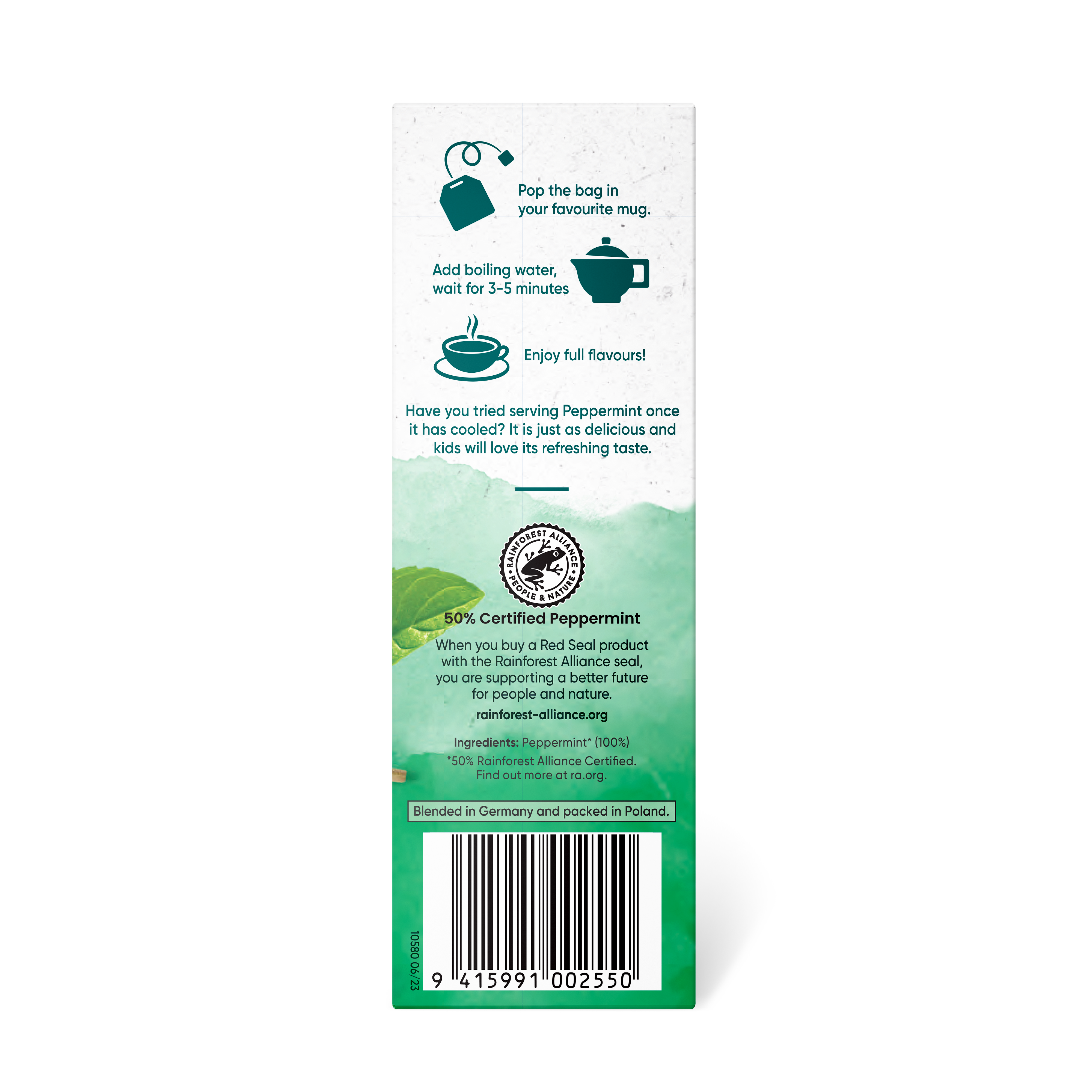 Place the bag in your favourite cup. Add boiling water and in 3-5 minutes you'll achieve maximum extraction and enjoyment. Have you tried serving Peppermint once it has cooled? It is just as delicious and kids will love its refreshing taste.
