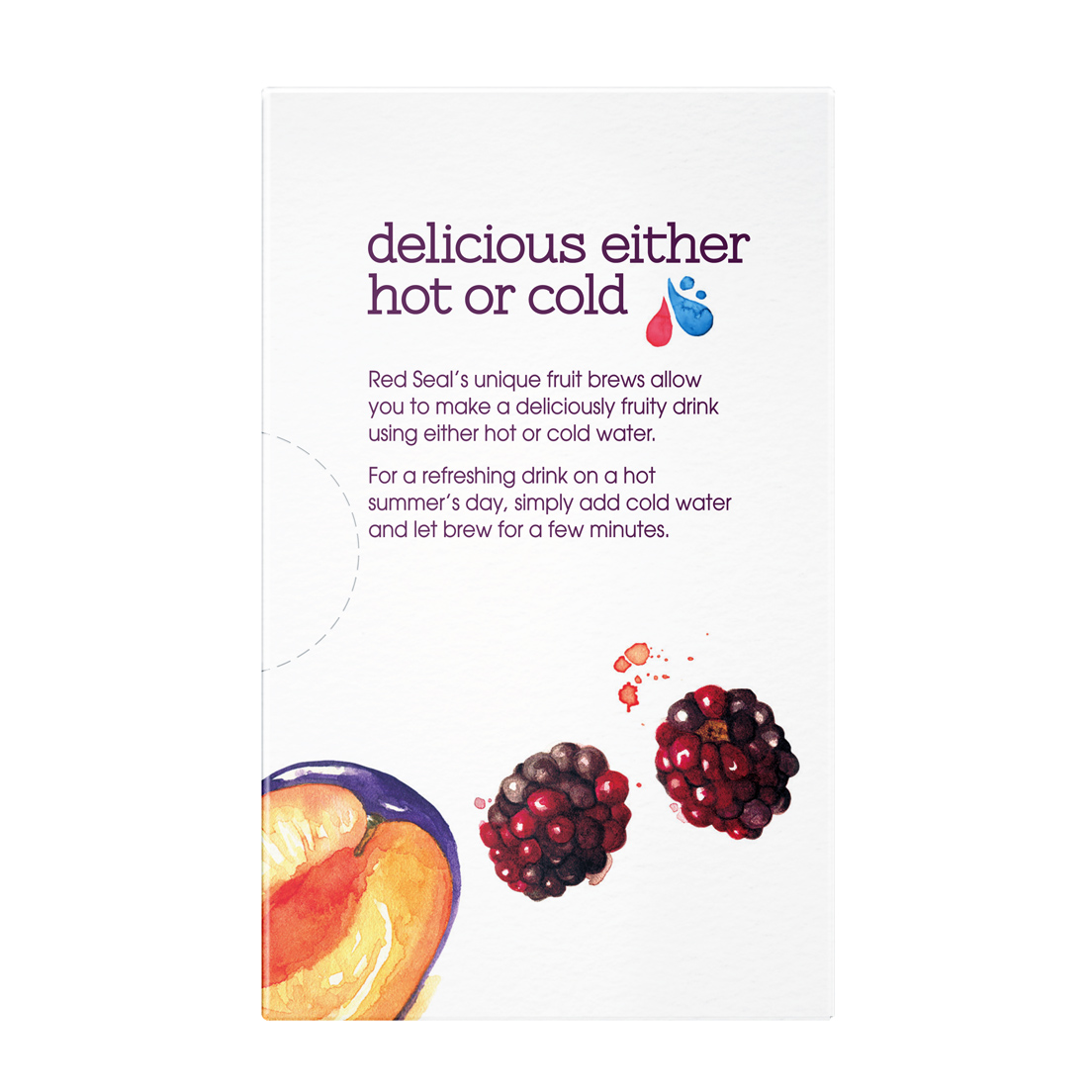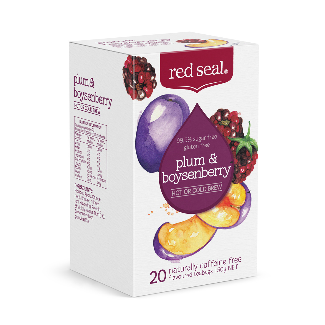 Take a moment to yourself with Red Seal Plum & Boysenberry fruit tea. Red Seal’s unique fruit brews allow you to make a deliciously fruity drink using either hot or cold water. For a refreshing drink on a hot summer's day, simply add cold water and let brew for a few minutes.