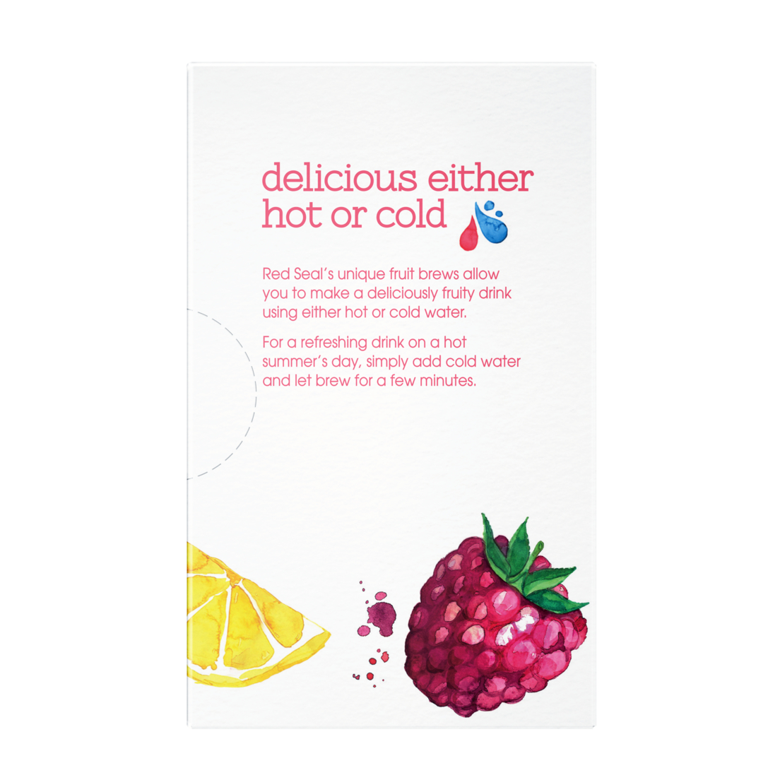 A refreshing tea with Raspberry & Lemon. Red Seal’s unique fruit brews allow you to make a deliciously fruity brew using either hot or cold water. For a refreshing drink on a hot summer's day, simply add cold water and let brew for a few minutes.