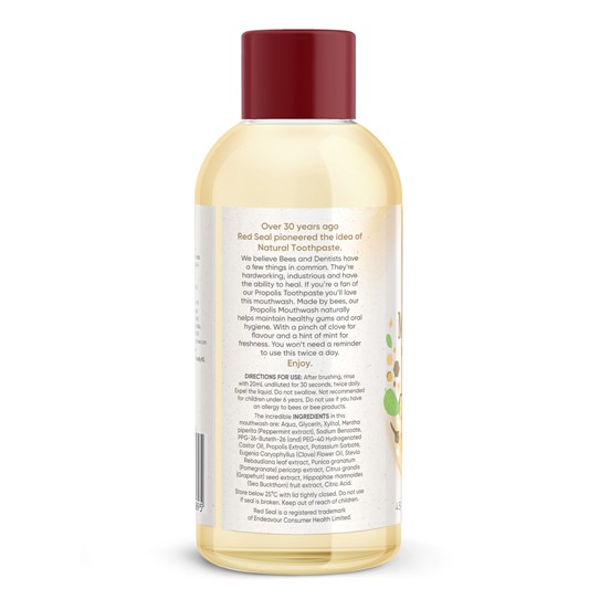 We believe bees and dentists have a few things in common. They're hardworking, industrious and have the ability to heal. If you're a fan of our Propolis Toothpaste, you'll love this mouthwash. Made by bees, our Propolis Mouthwash naturally helps support healthy gums and oral hygiene. With a pinch of clove for flavour and a hint of mint for freshness. You won't need a reminder to use this twice a day. Enjoy!