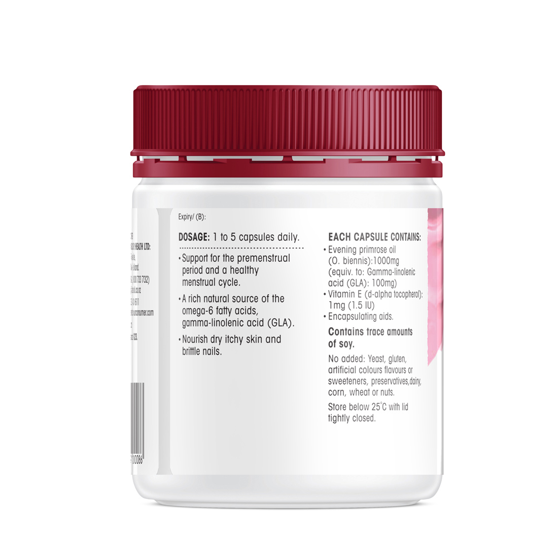 Red Seal High Strength 1,000 mg dose of Evening Primrose Oil, supports hormone balance and skin for women's health.