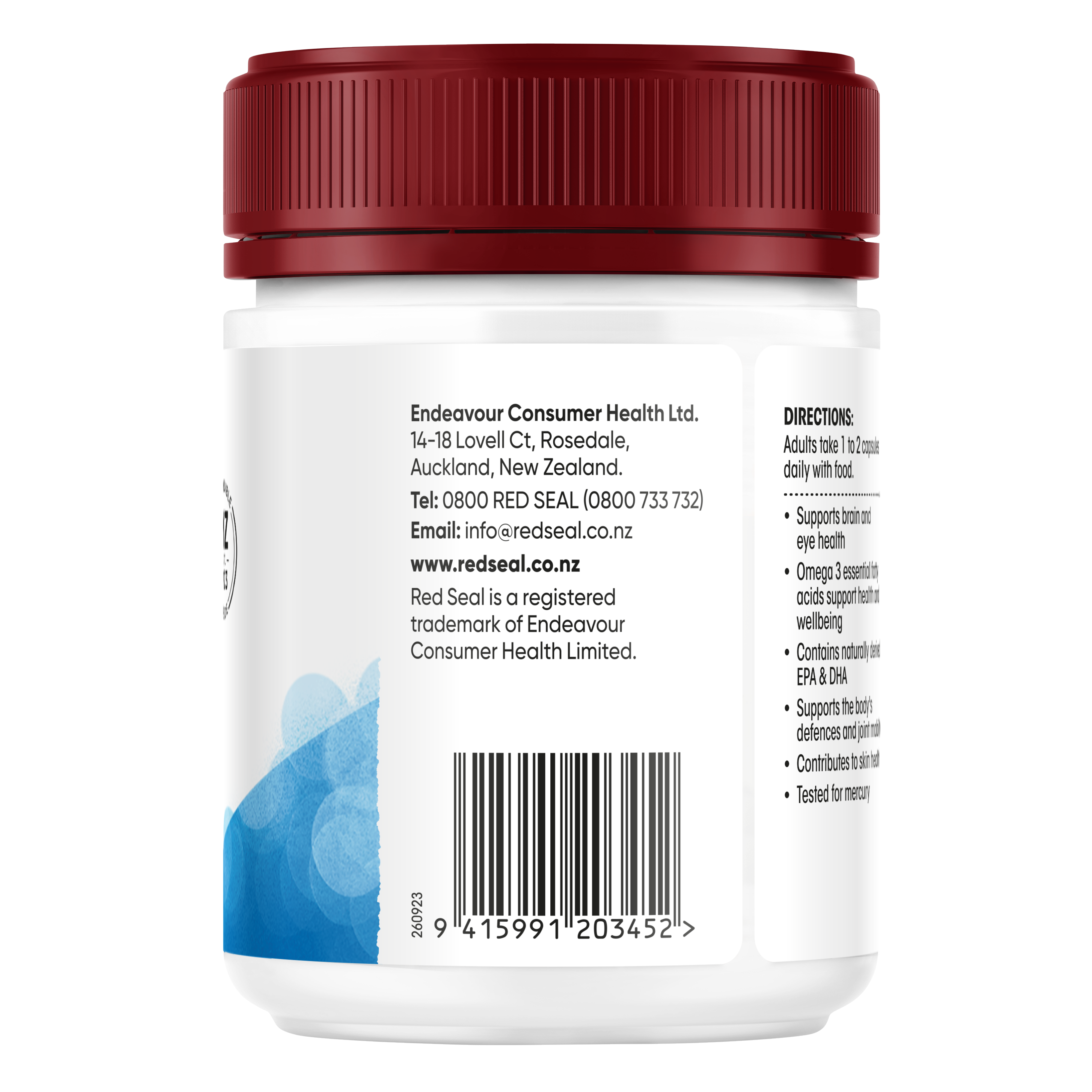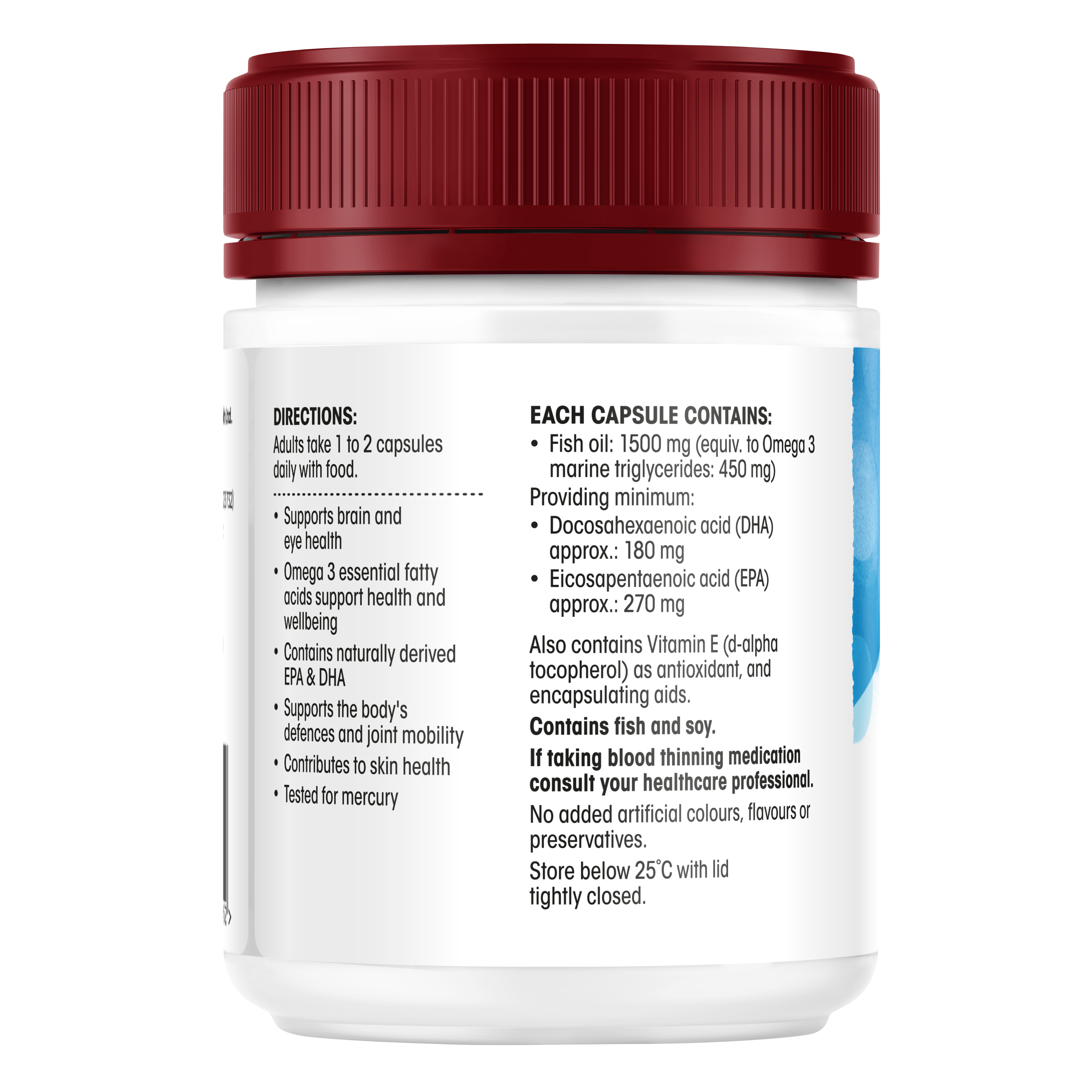 Red Seal 1500mg Fish Oil contains Omega 3 essential fatty acids to support joint, heart and skin health and sustainably sourced. For General Wellbeing.