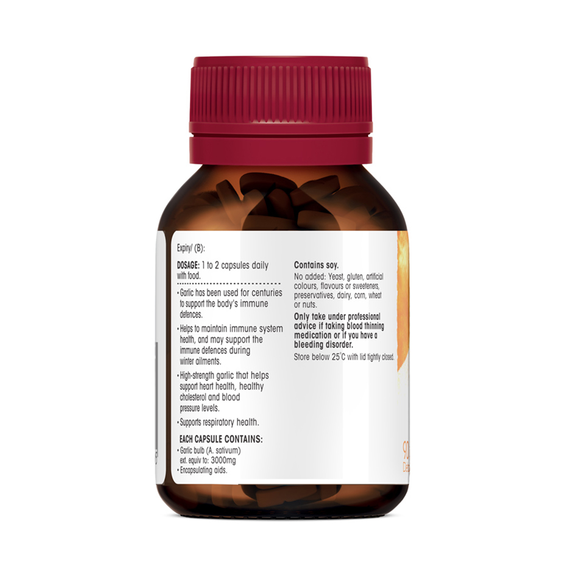 • Garlic bulb (A. sativum) ext. equiv to: 3000mg