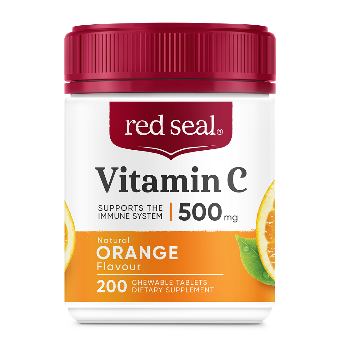 Red Seal 500mg Vitamin C chewable tablets contain antioxidant support for the body's immune defences.
