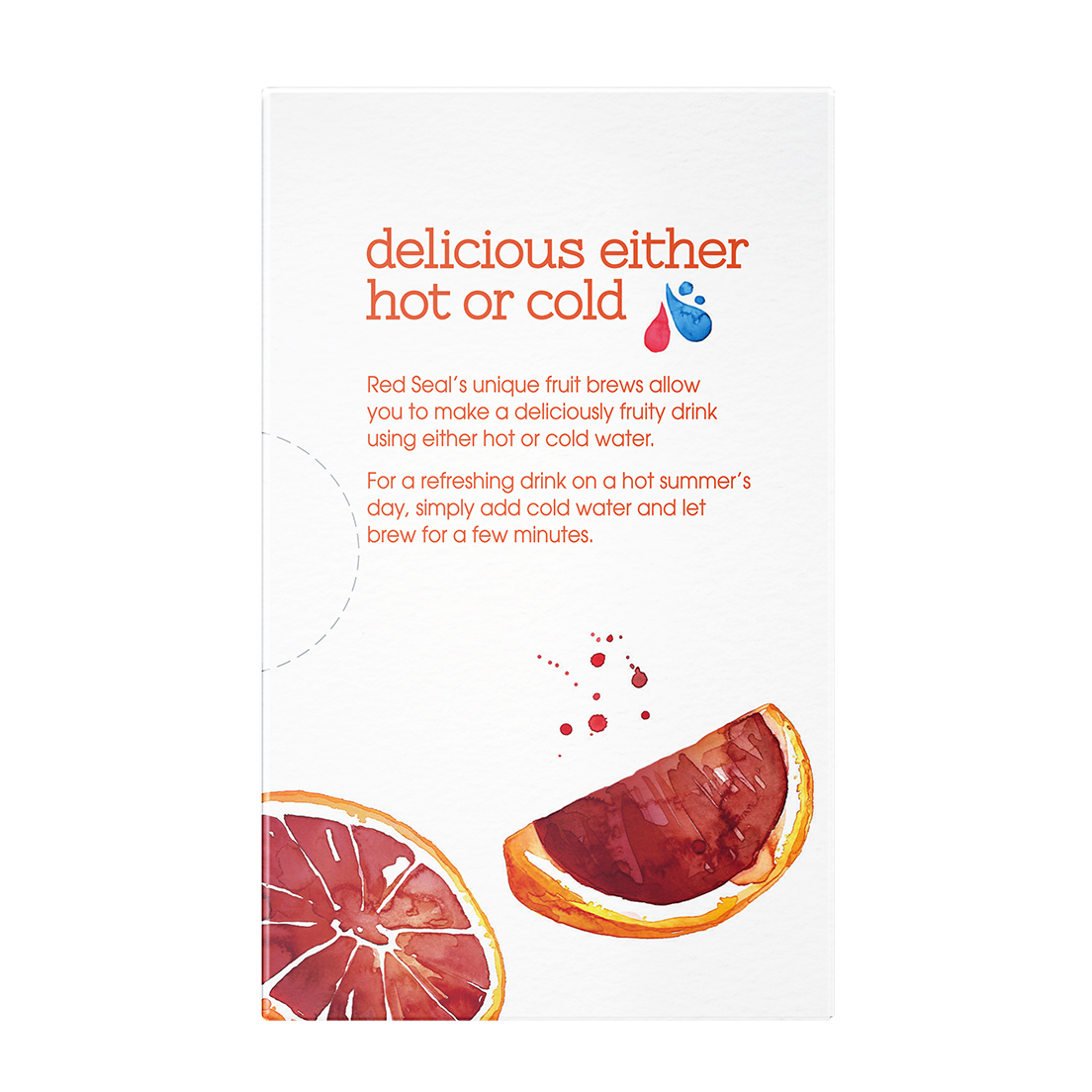 Treat yourself to a refreshing cup of zesty Red Seal Blood Orange fruit brew. Red Seal’s unique fruit brews allow you to make a deliciously fruity drink using either hot or cold water. For a refreshing drink on a hot summer's day, simply add cold water and let brew for a few minutes.