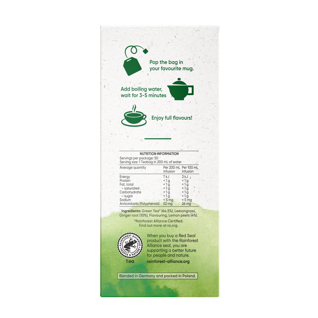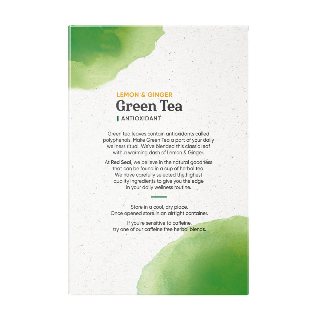 Green tea is naturally rich in antioxidants called polyphenols. We've blended this classic leaf with a warming dash of Lemon & Ginger. At Red Seal, we believe in the natural goodness that can be found in a cup of tea. We have carefully selected the highest quality ingredients to give you the edge in your daily wellness routine.
