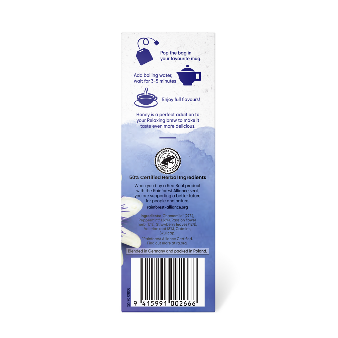 Place the bag in your favourite cup. Add boiling water and in 3-5 minutes you'll achieve maximum extraction and enjoyment. Honey is a perfect addition to your cup of Relaxing to make it taste even more delicious.