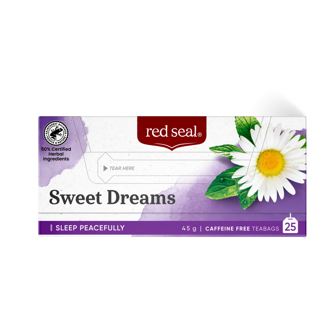 Nothing comes close to a great night’s sleep. Red Seal Sweet Dreams tea contains a relaxing blend of chamomile, peppermint, lemon balm, passion flower and valerian. Settle down for a soothing cup. Sweet Dreams. No bedtime story required.