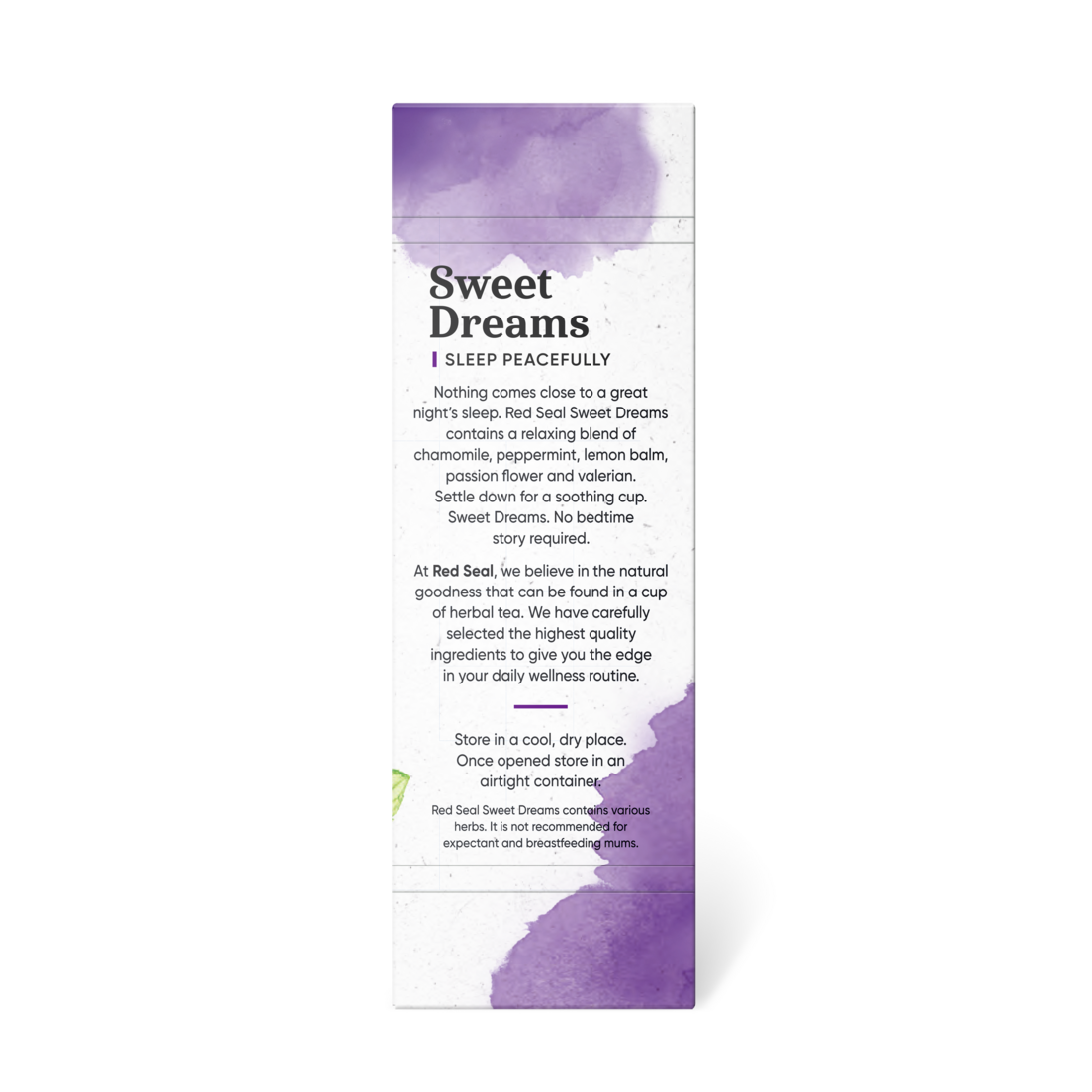Sweet Dreams contains various herbs. It is not recommended for expectant and breastfeeding mums.