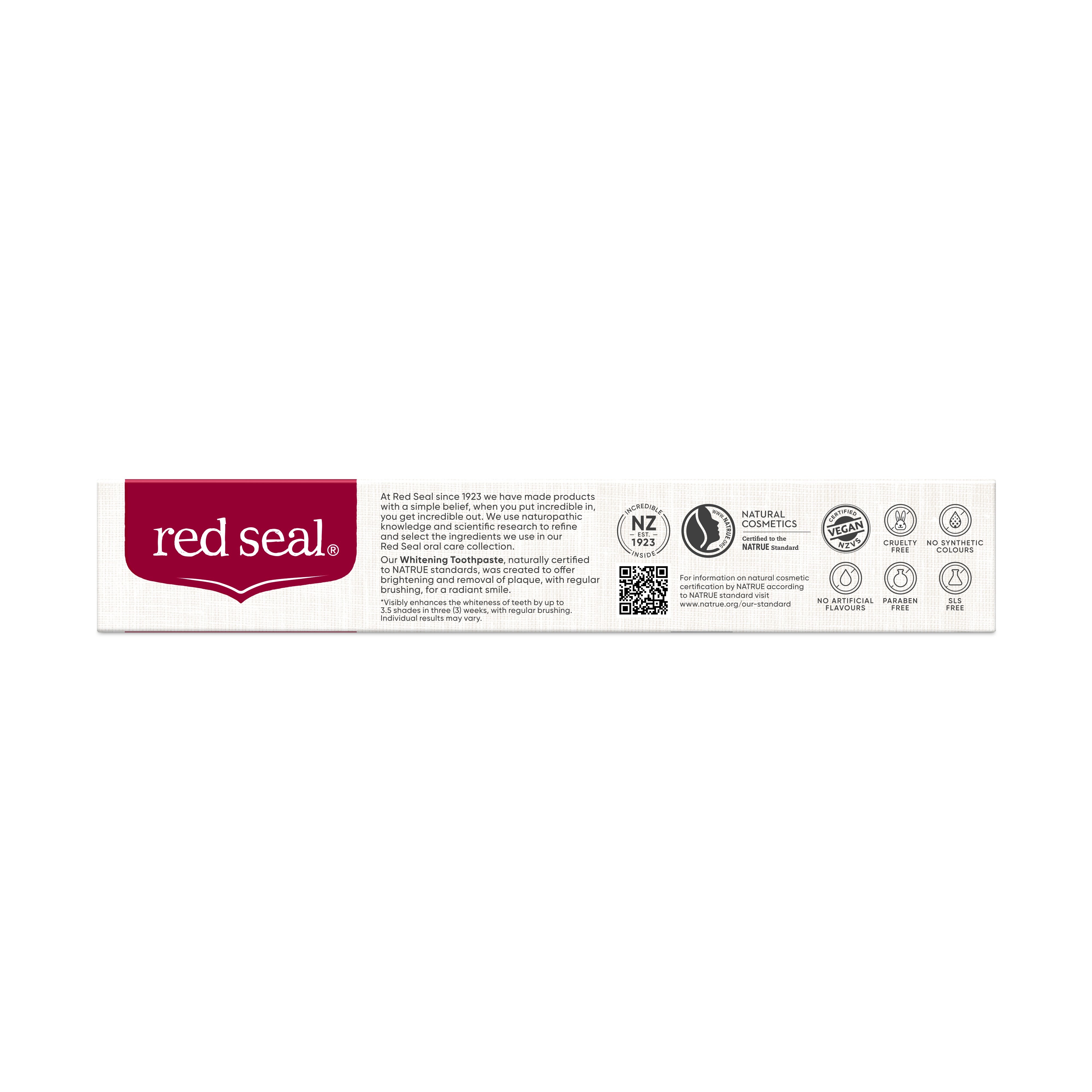 Our Whitening Toothpaste, naturally certified to NATRUE standards, visibly enhances the whiteness of teeth by up to 3.5 shades in three weeks*, for a radiant smile.